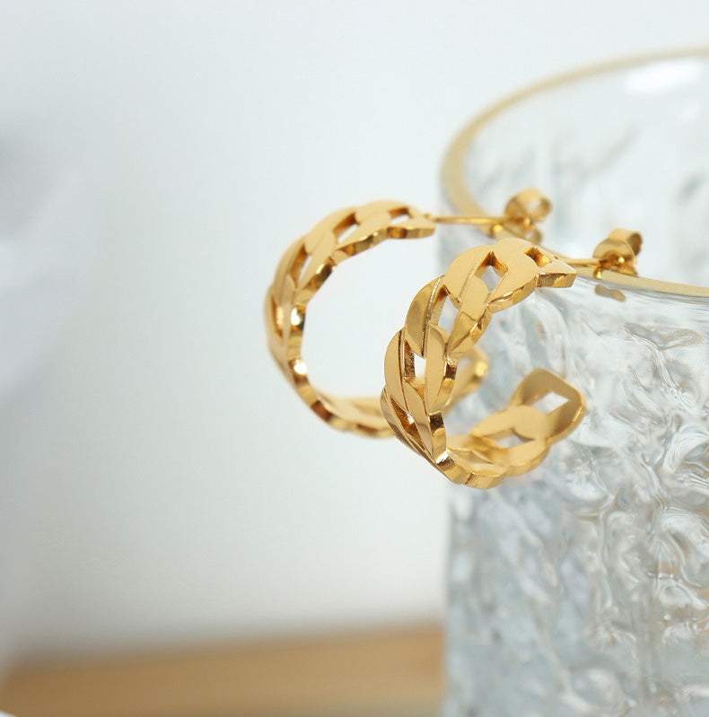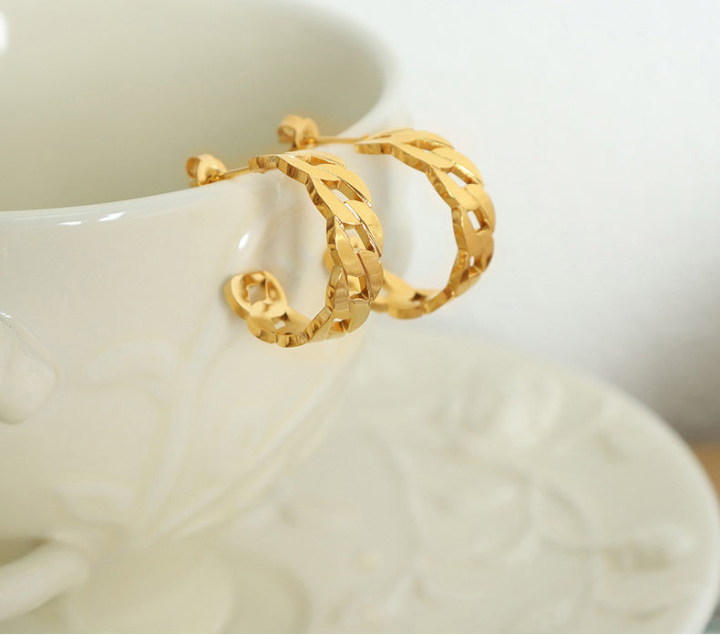 Stilvoll und schlicht: modische und schlichte, vielseitige Ohrringe im C-förmigen Twist-Design aus 18 K vergoldetem Edelstahl.