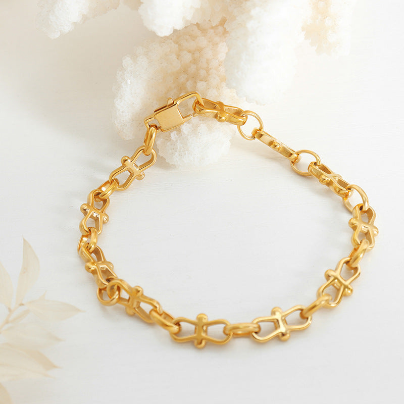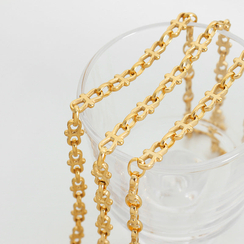 18 Karat vergoldetes, trendiges, modisches Armband-Halsketten-Set mit 8-stelligen Nähten und dicker Kette
