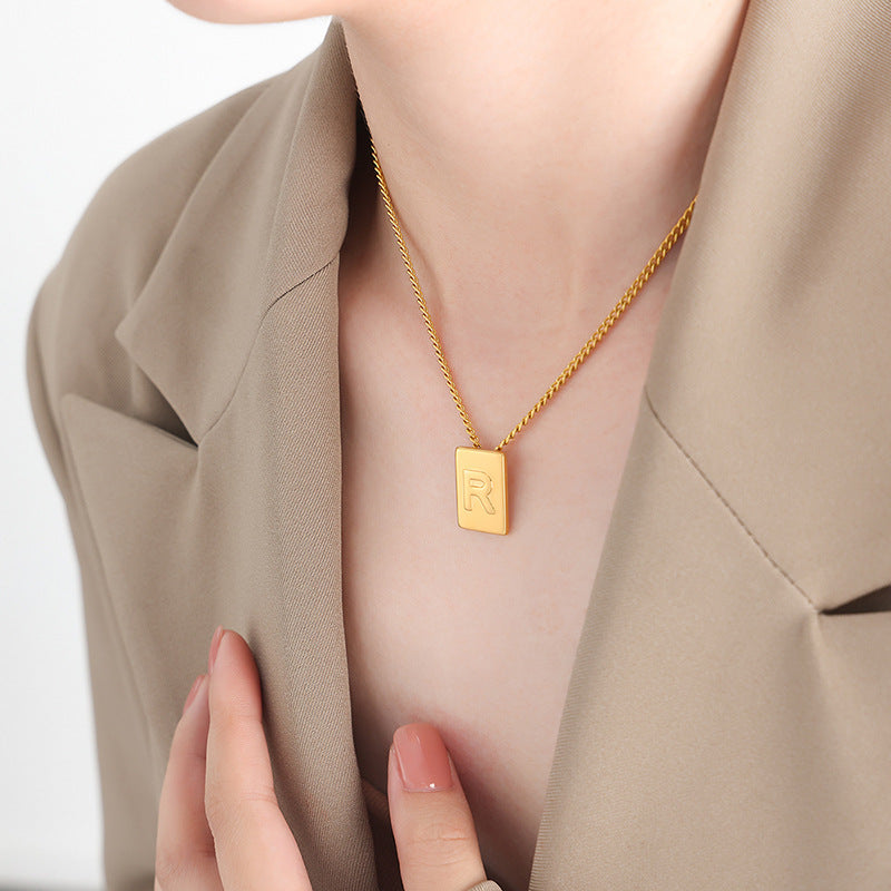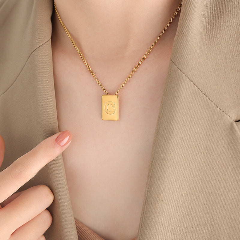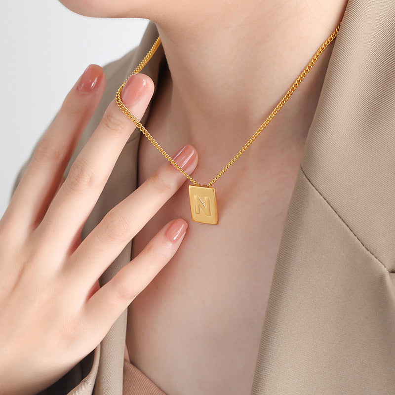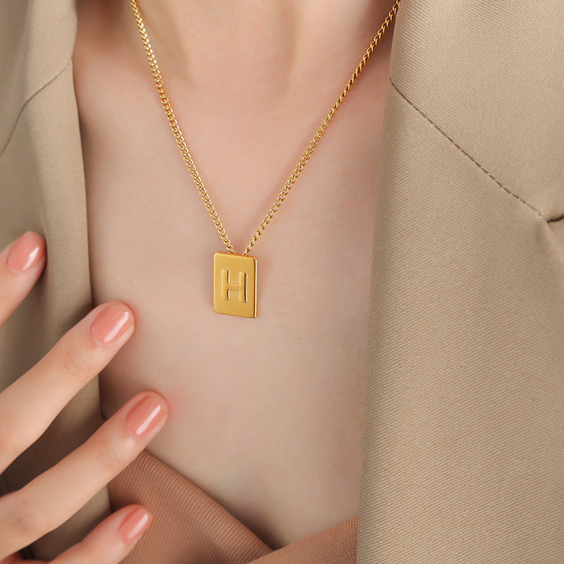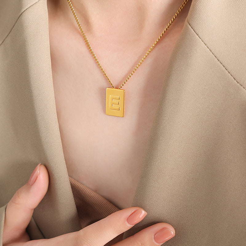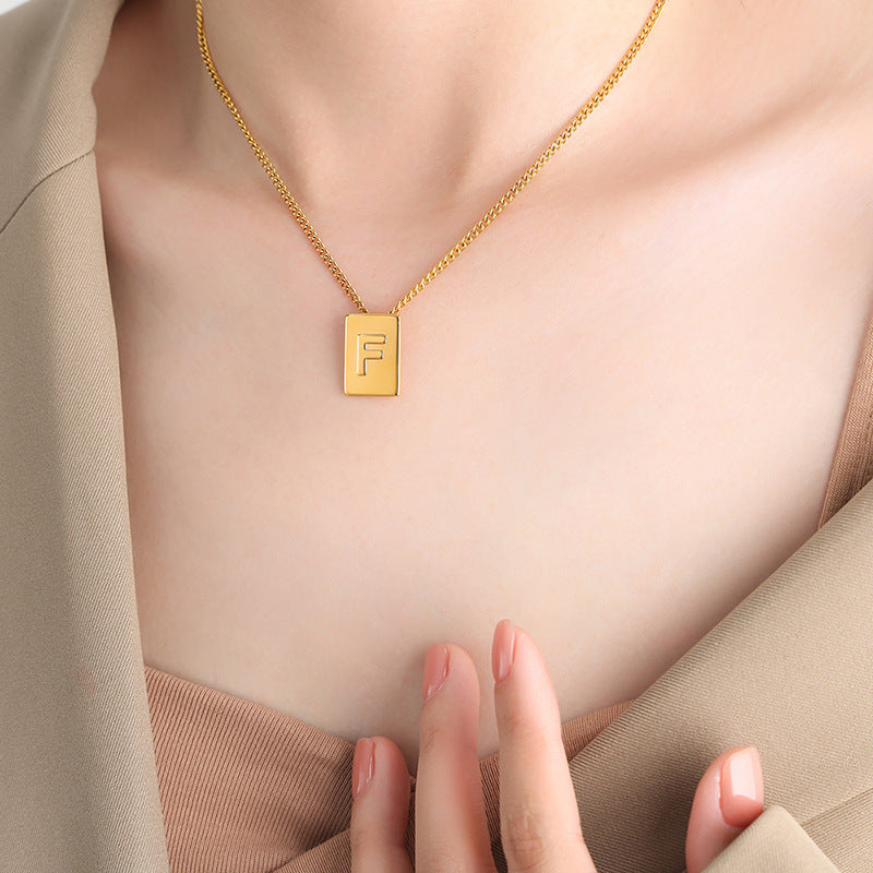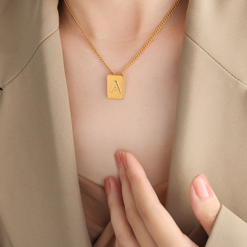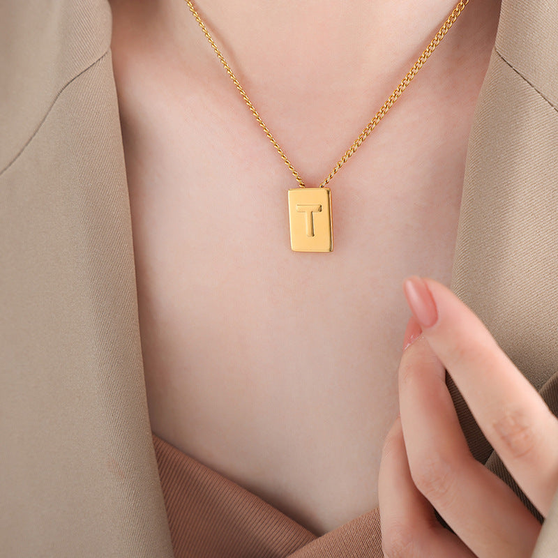 18-Karat vergoldete Edelstahl-Halskette, romantische, personalisierte Halskette in quadratischer Form mit 26 englischen Buchstaben im leichten Luxusstil