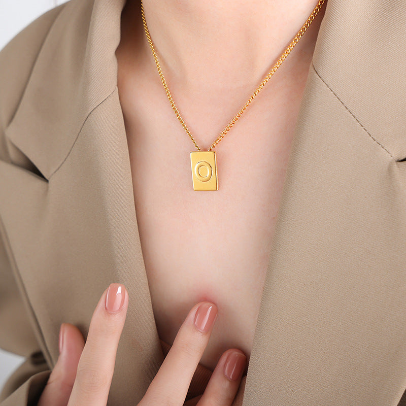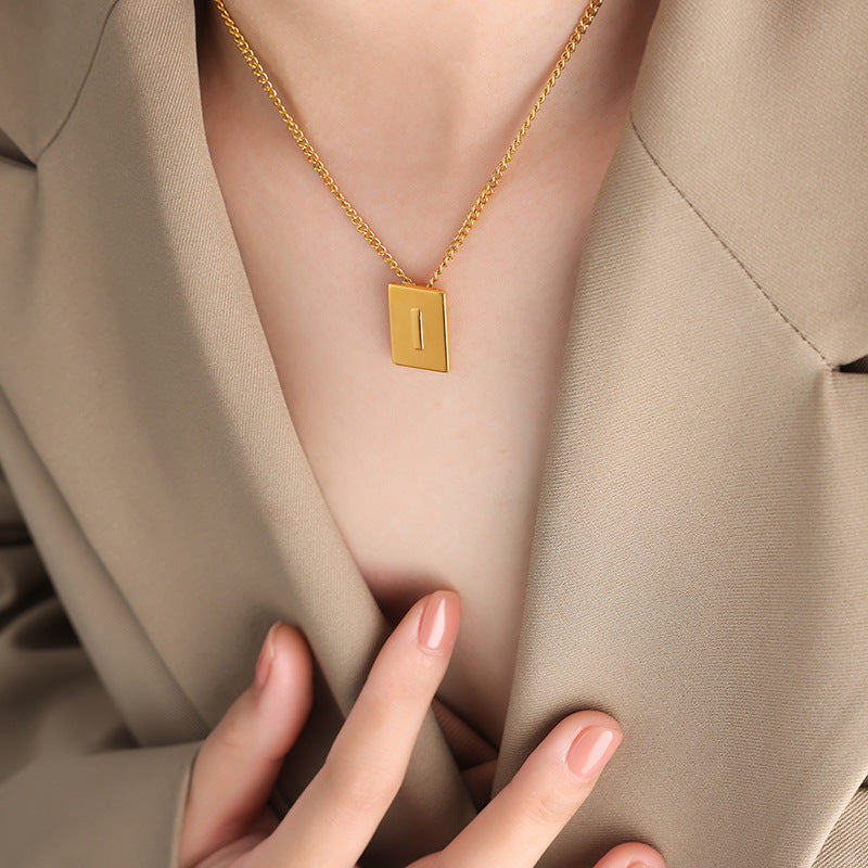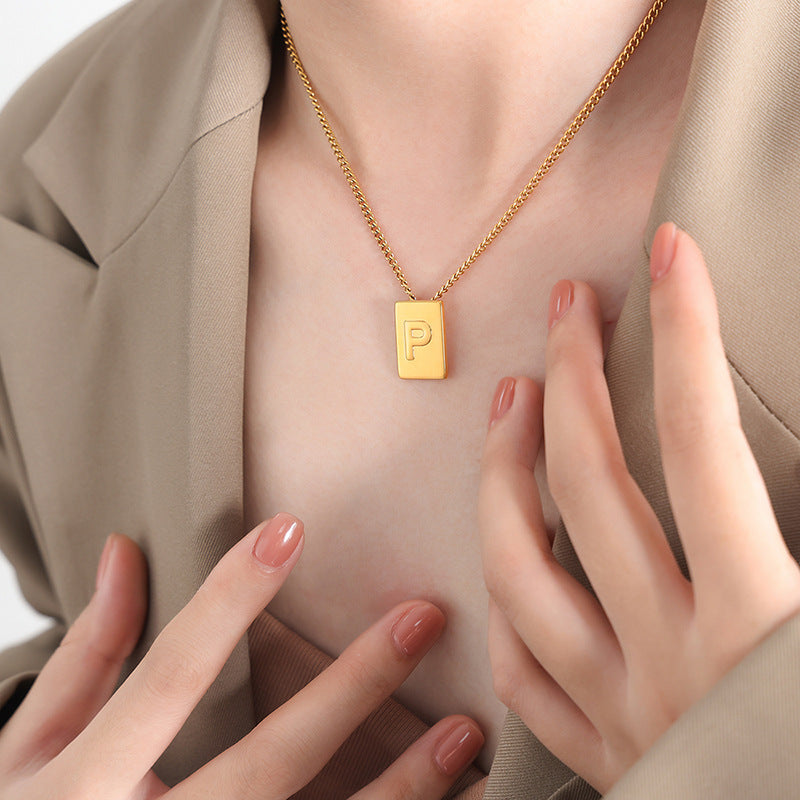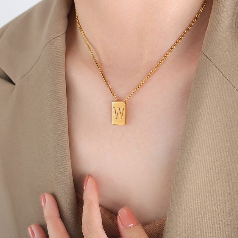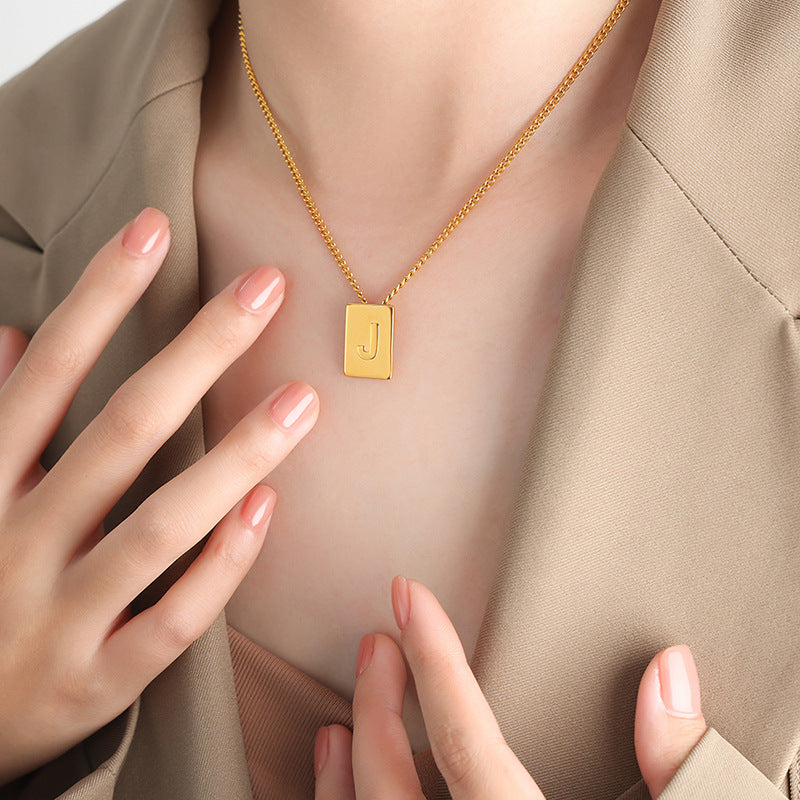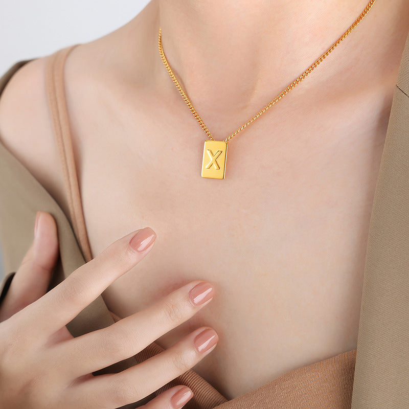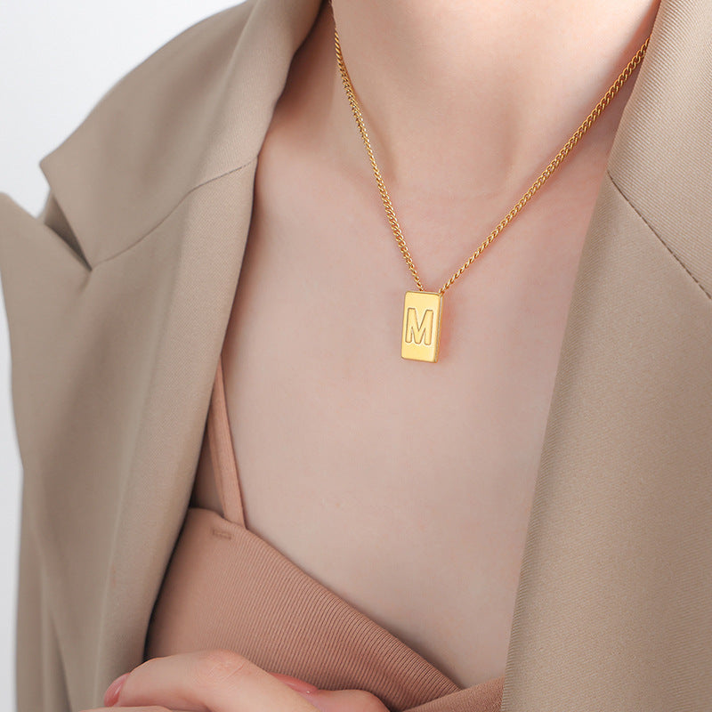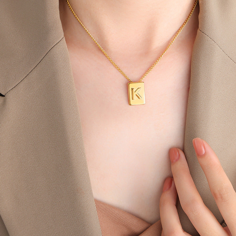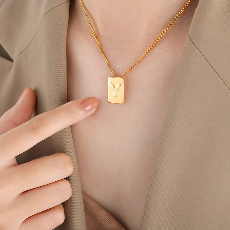 18-Karat vergoldete Edelstahl-Halskette, romantische, personalisierte Halskette in quadratischer Form mit 26 englischen Buchstaben im leichten Luxusstil