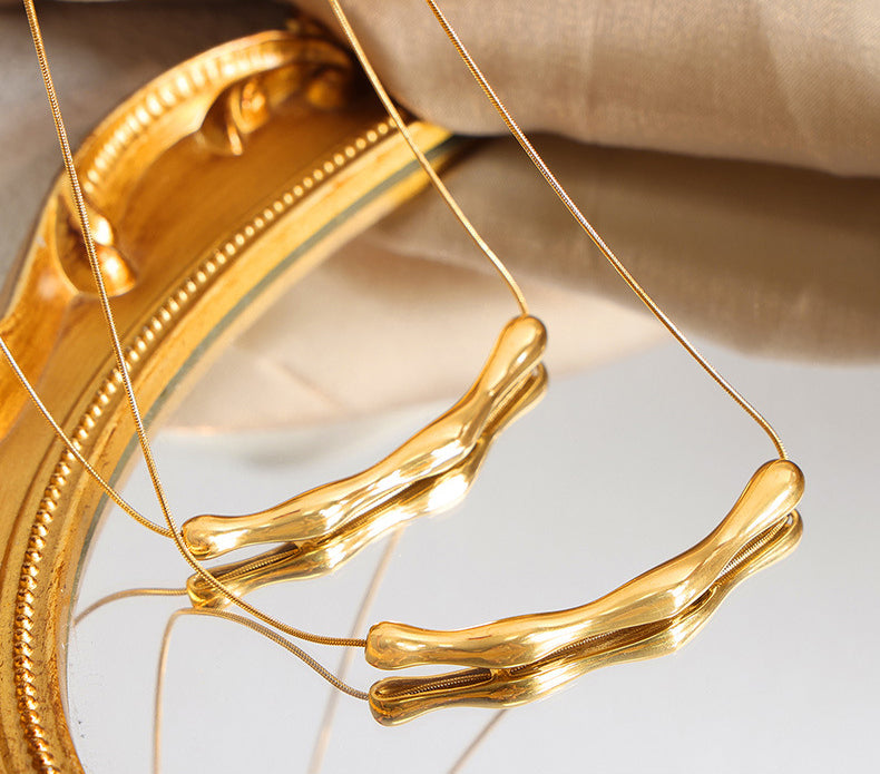 18K vergoldete Edelstahl-Halskette edle, einfache, unregelmäßige Gelenkform-Design.