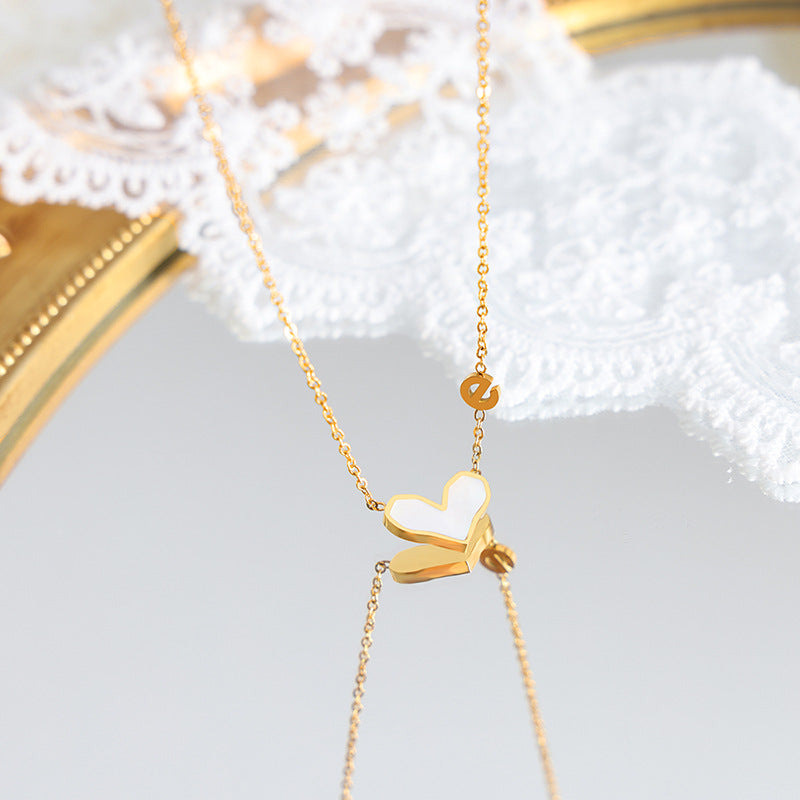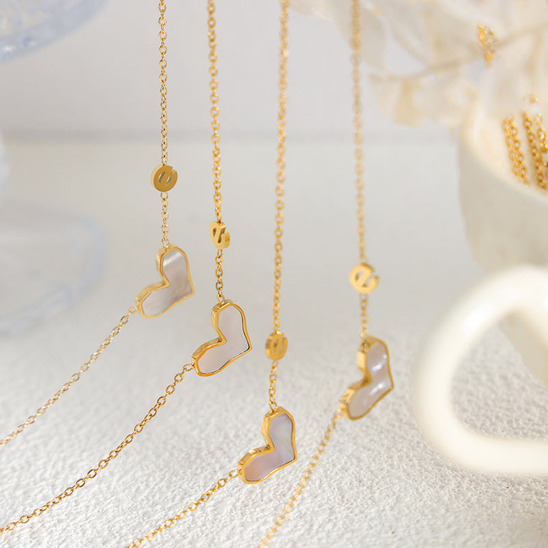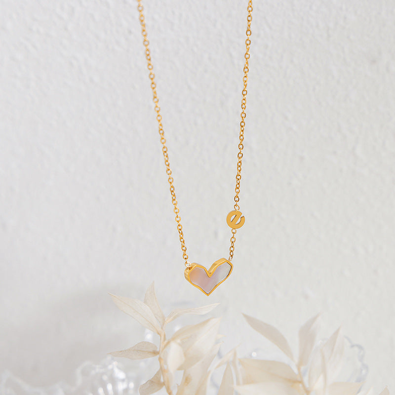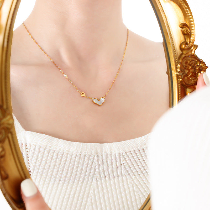 Diese Halskette mit Anhänger aus 18-K vergoldetem Edelstahl kombiniert edle Edelsteine und ein personalisiertes Monogramm-Design für einen einzigartigen Charme. Es kombiniert die Form eines Herzens mit dem Buchstaben „e“ und ist ein Schmuckstück, das sowohl edel als auch voller Persönlichkeit ist.