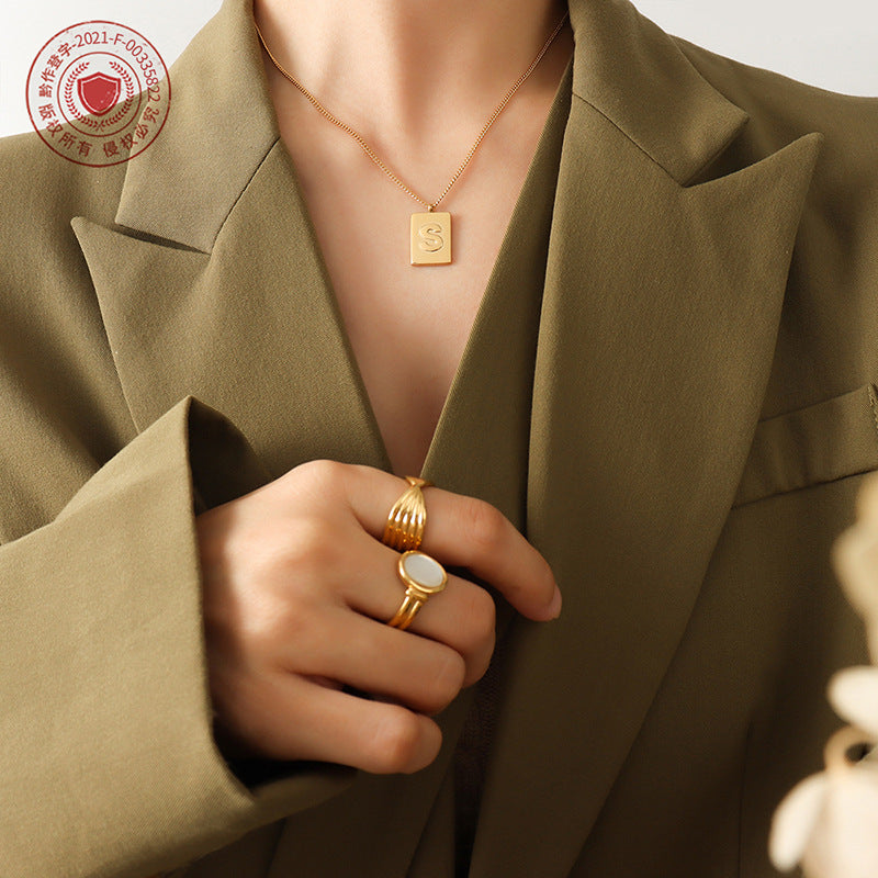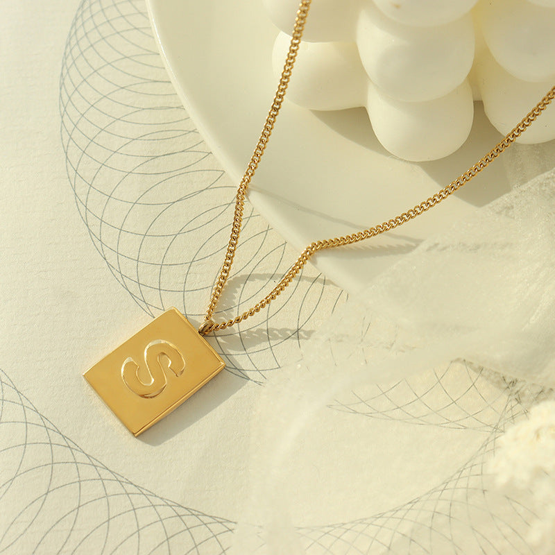 Schlichter quadratischer Anhänger aus 18-Karat vergoldetem Edelstahl im Buchstaben-S-Design