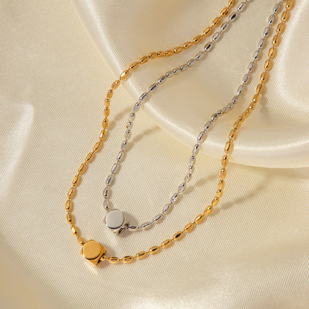 Minimalistische modische Perlenkette aus 18 Karat vergoldetem Edelstahl, mit quadratischem Design, vielseitige Anhänger-Halskette
