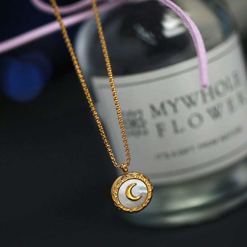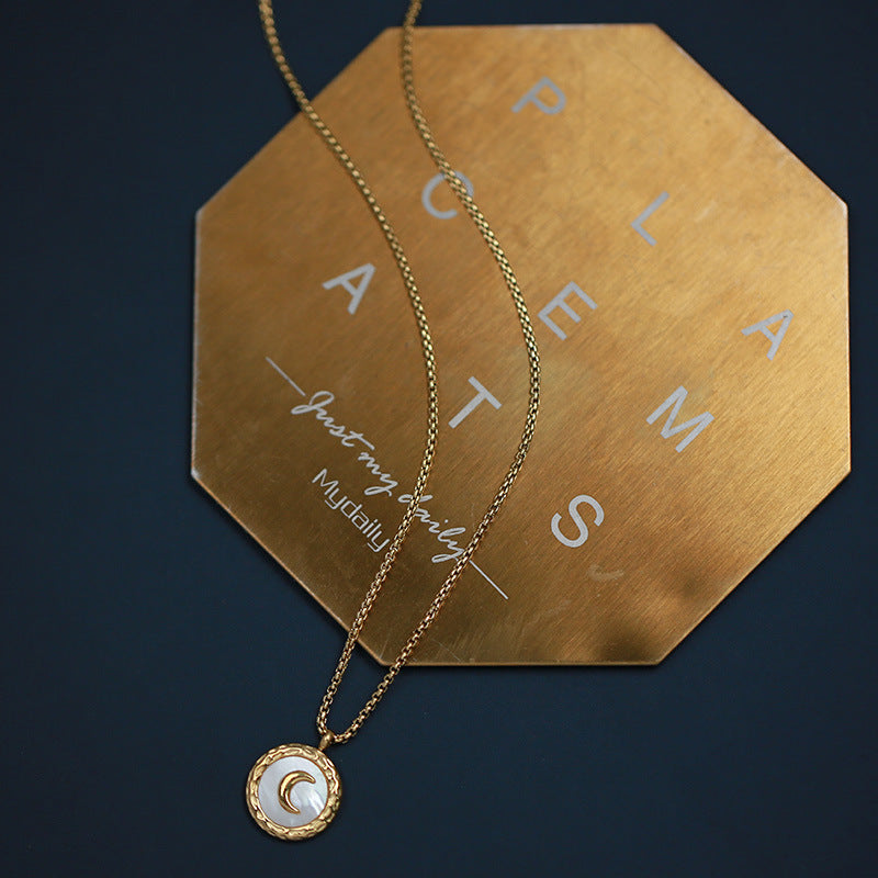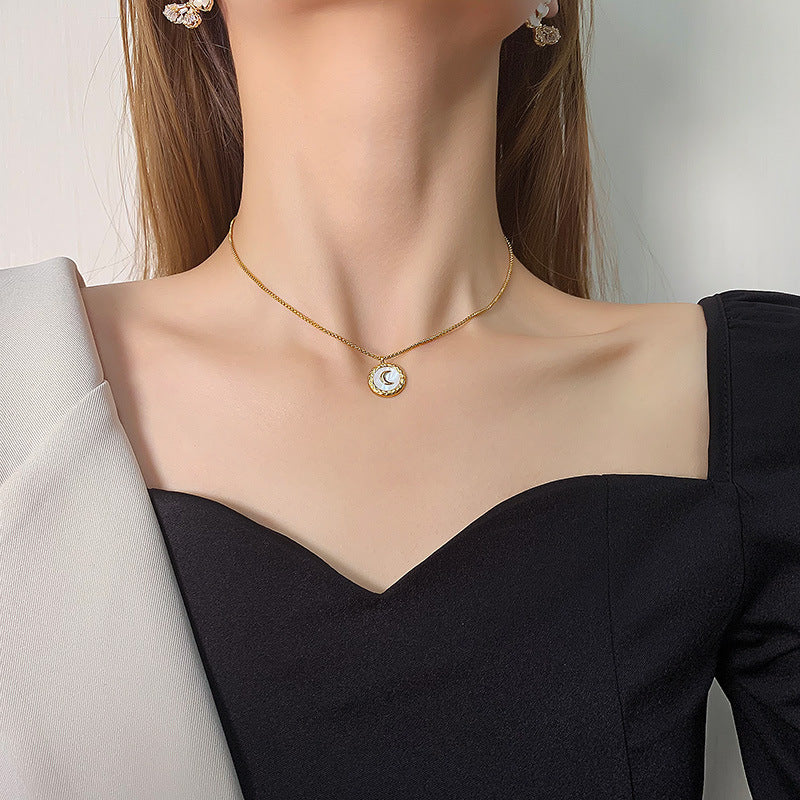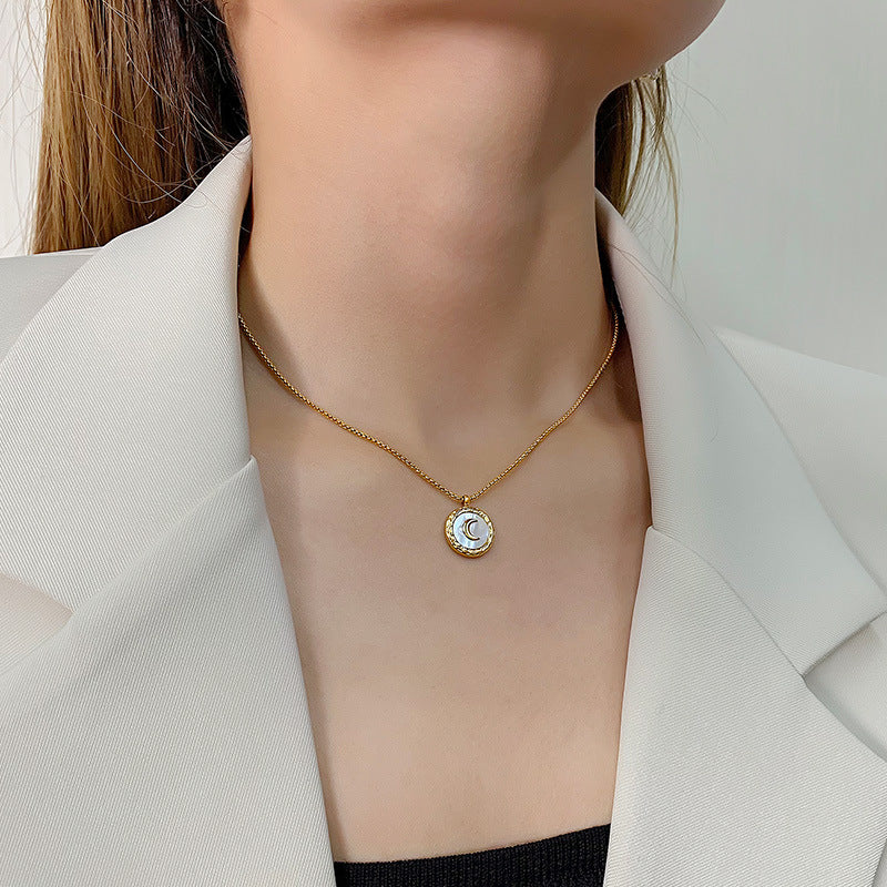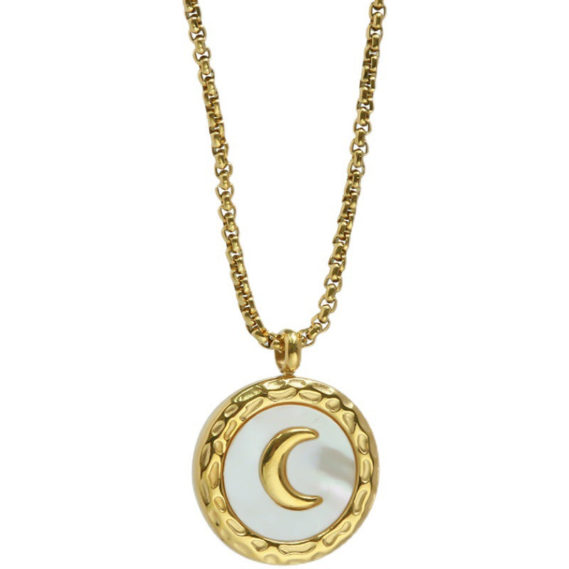 Modische, schlichte, runde, vielseitige Halskette aus 18-karätigem vergoldetem Edelstahl mit Monddesign