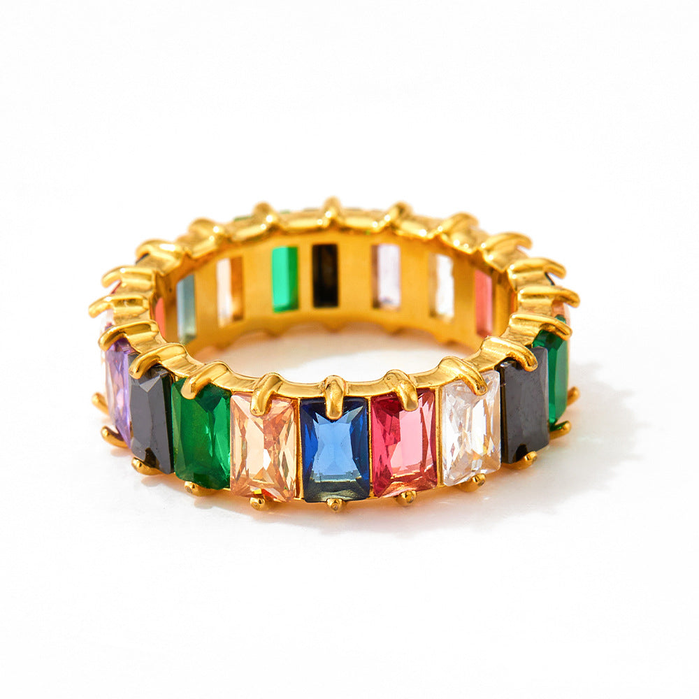 Modischer Retro-Ring aus 18-Karat vergoldetem Edelstahl mit eingelegtem quadratischem Zirkon-Design im Hip-Hop-Stil