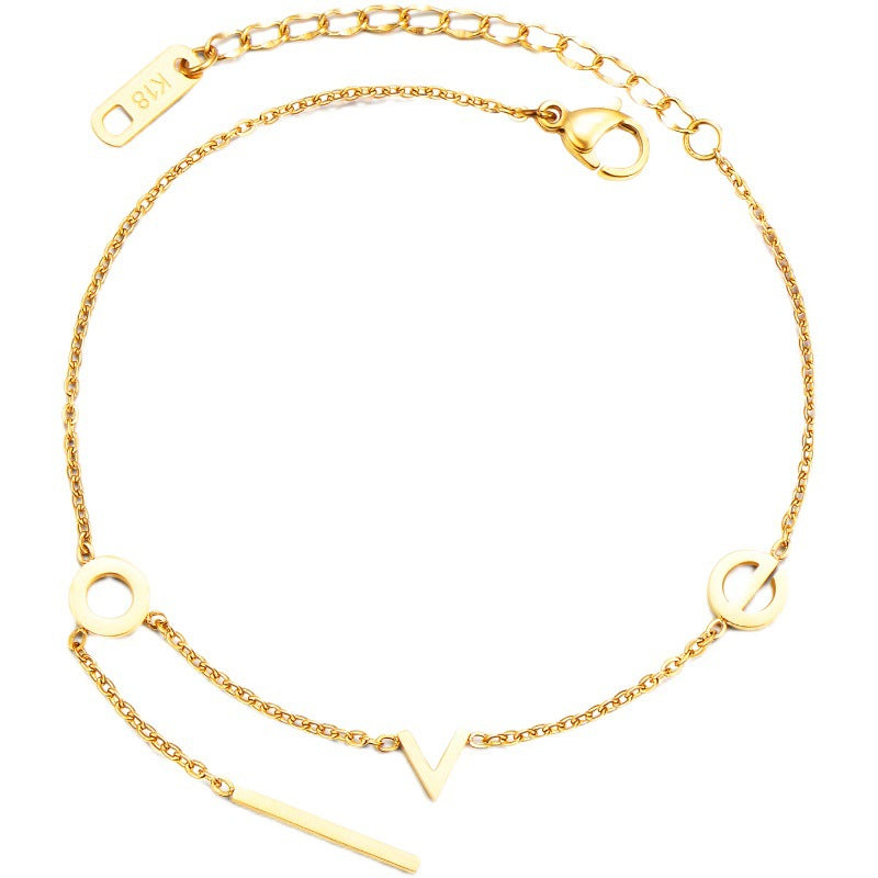 Modisches, vielseitiges Fußkettchen aus 18-Karat vergoldetem Edelstahl mit einfachem Liebesschrift-Design