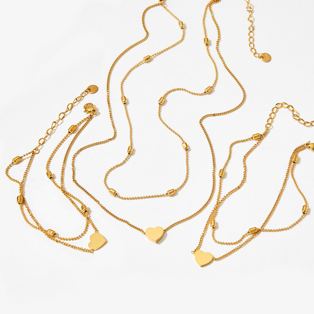 Neuartiges und modisches doppellagiges Fußkettchen im Strandstil aus 18 Karat vergoldetem Edelstahl mit Liebesdesign