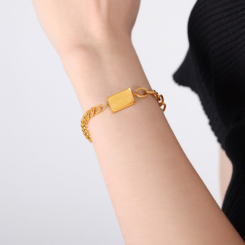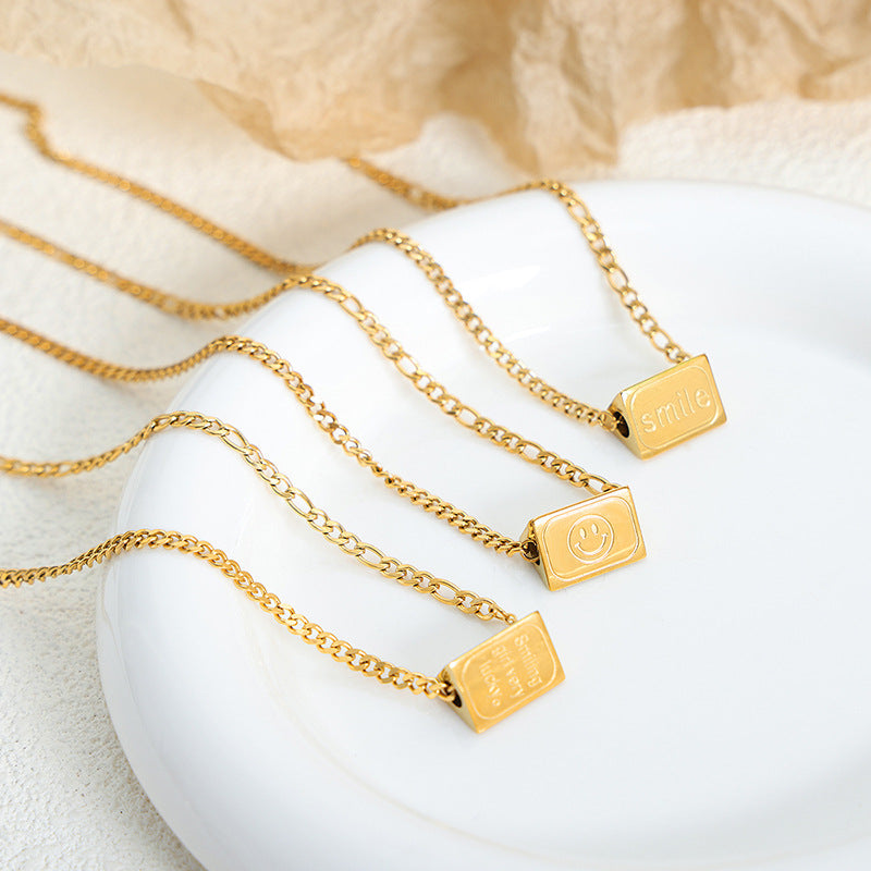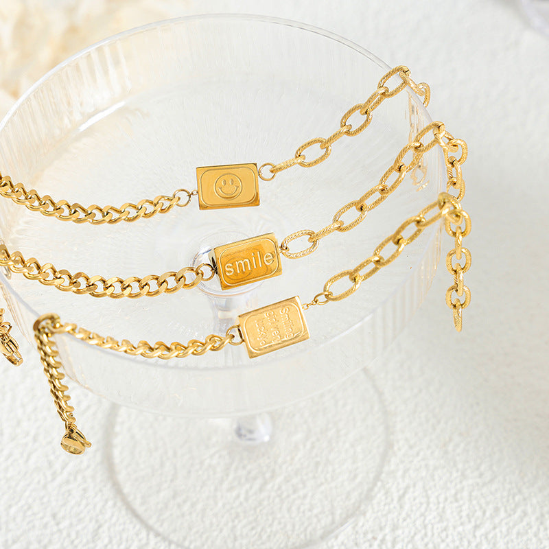 Neuartiges und modisches, konisches Armband oder Halskette aus 18-karätigem vergoldetem Edelstahl mit Smiley-Gesicht und „Smile“-Design