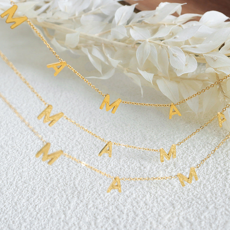 Schlichte und elegante Halskette im leichten Luxus-Stil mit dem Buchstaben „MAMA“ aus 18 Karat vergoldetem Edelstahl