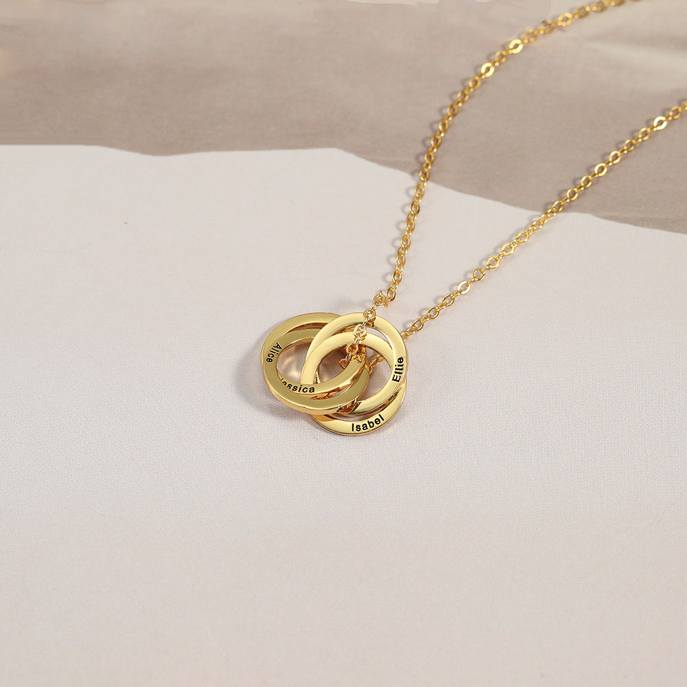 Trendige Mode-Halskette mit drei ineinandergreifenden, anpassbaren Namensdesigns im leichten Luxusstil
