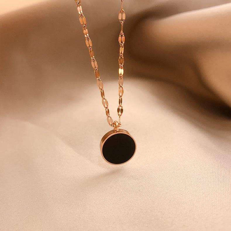 Trendige Halskette mit rundem, doppelseitigem Design-Anhänger