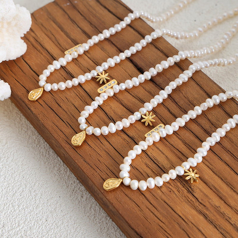 Vielseitige Halskette aus exquisiten einfachen Perlen aus 18 Karat vergoldetem Edelstahl in unregelmäßigem Formdesign