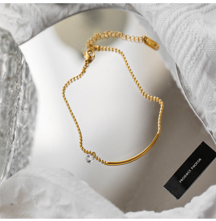 Vielseitiges Fußkettchen aus 18-Karat vergoldetem Edelstahl mit schlichtem Smile-Design und eingelegtem Zirkon
