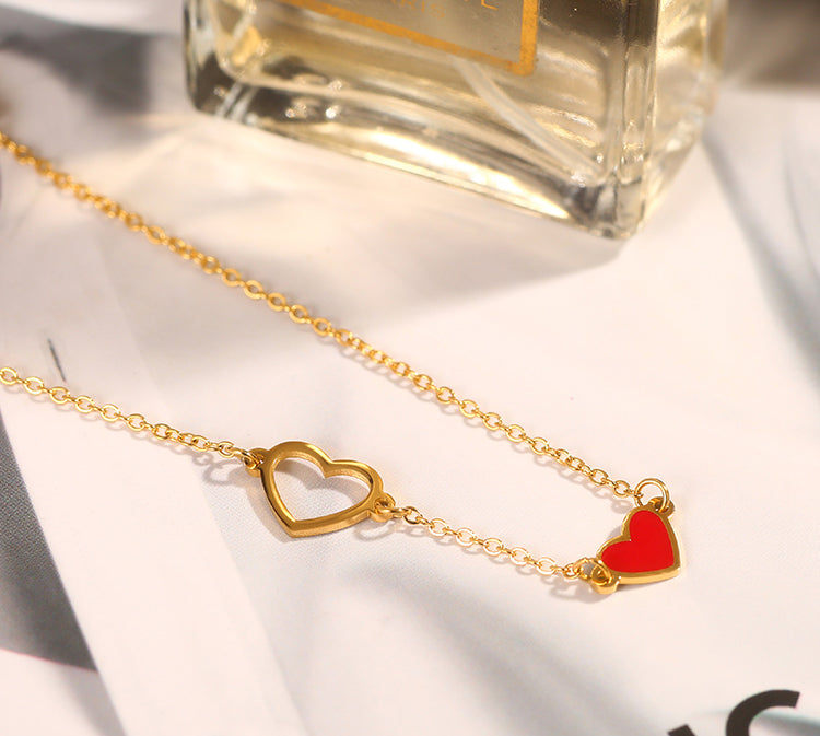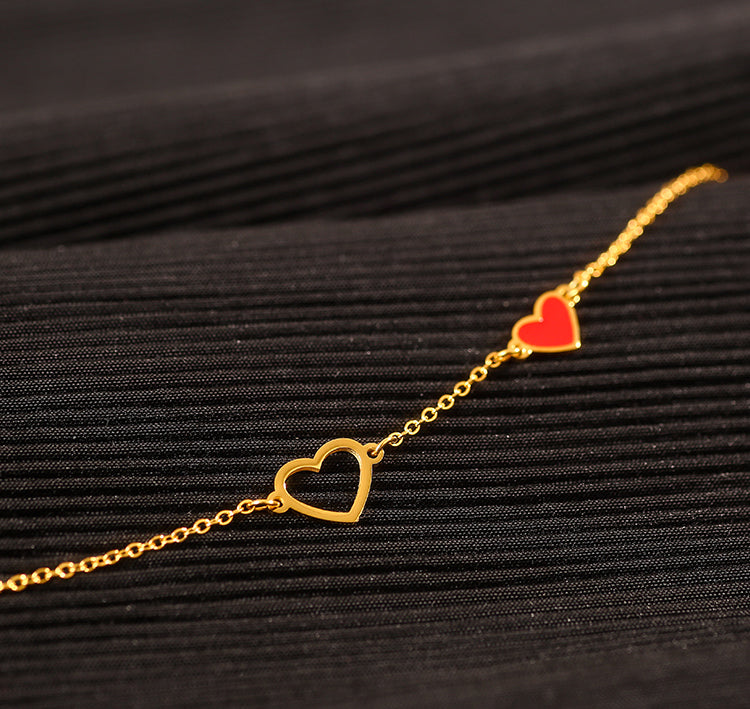 Vielseitiges Fußkettchen aus 18-Karat vergoldetem Edelstahl, exquisites, leichtes, luxuriöses rotes Herz-Design